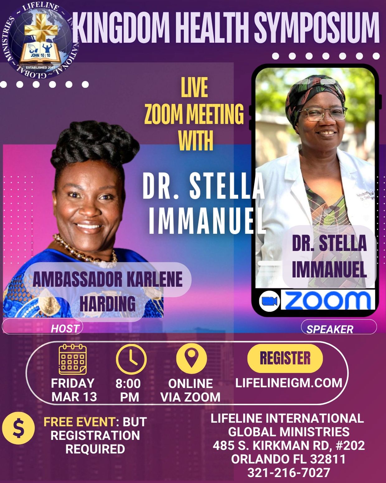 Join Ambassador Karlene Harding, on Friday March 13, as Dr. Stella Immanuel imparts both spiritual and natural, health and wellness wisdom, which is greatly needed specifically in our current times.
